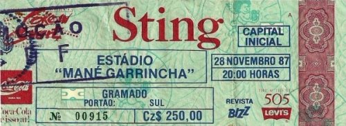 1987: Sting performed at the Stadium Mane Garrincha in Brasilia, Brazil.